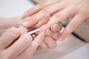 甘皮や角質をやさしく整え、爪の長さや形をお客様の好みと生活に合わせて調整します。
