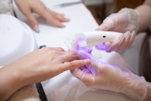 ジェルを硬化する際の熱さ(硬化熱)は、ライトに入れる前に仮硬化を行うことで軽減できます。